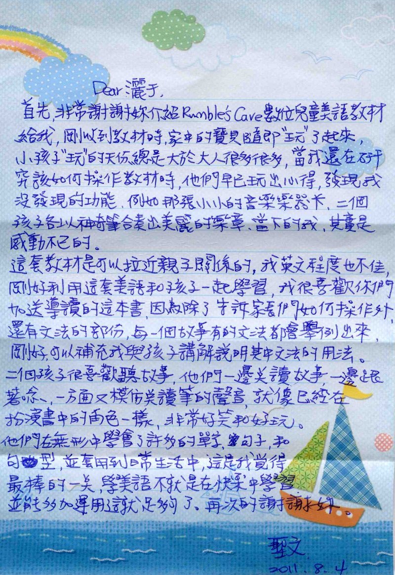 這是一封來自客戶真誠的使用分享..