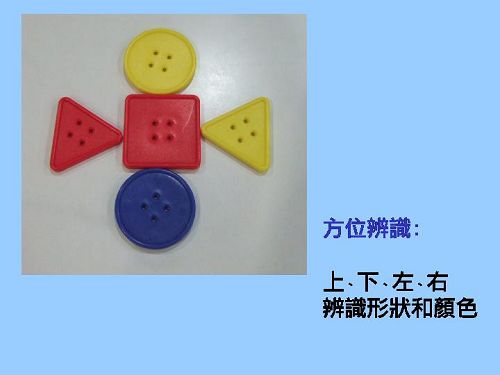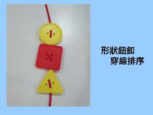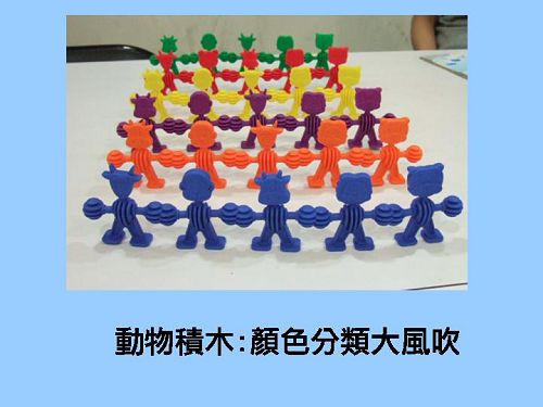 搭配教具:動物造型積木、穿洞鈕扣