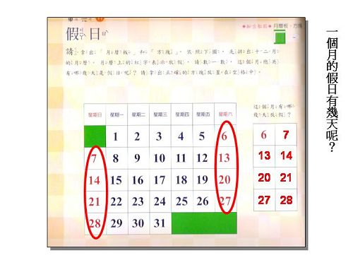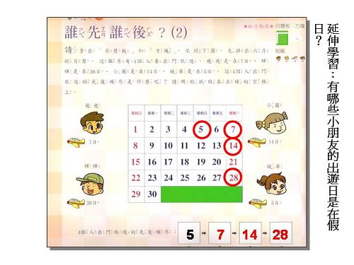 搭配教具:月曆板