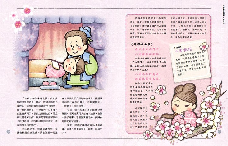 全美語 單字、例句應用 配合點讀功能 ◎阿德蝸說成語 ‧成語的由來 人面桃花 心有靈犀 司空見慣 ‧詩詞欣賞 ‧文人時代背景剖析