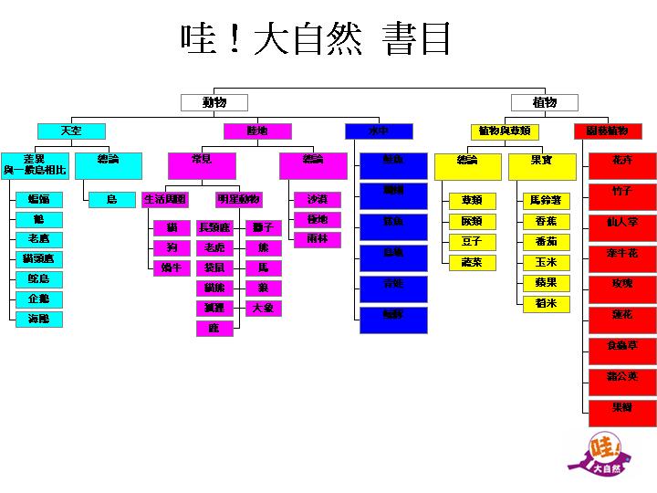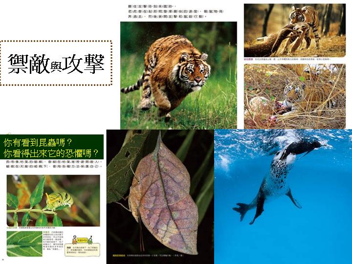 有別於其它種動物的特色 鮭魚:生在淡水,長在海水,又回到淡 水去生產 珊瑚:不會動的動物 鯊魚:食物鏈的最上層 龜類:包含陸、海兩種 青蛙:小時在水裡,大了水、陸皆可 鯨豚:海裡的哺乳動物 |
